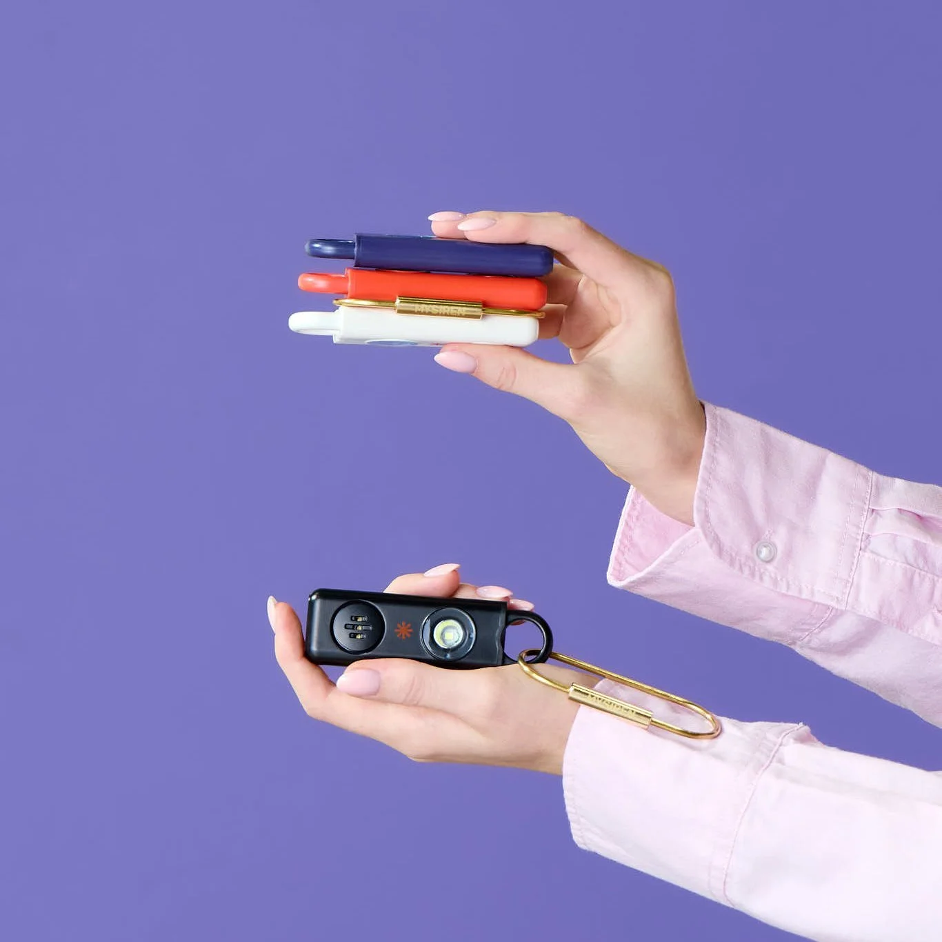 VISUAL IDENTITYWEBSITECOLLATERAL DESIGNPACKAGINGPHOTO GUIDELINESTHE PROJECTMySiren is a personal safety alarm designed for women — a compact, wearable device built to help its users feel safer in every space they inhabit. The founder came to us needing a complete visual identity built from scratch, with a scope that extended well beyond the logo: art direction and photography guidelines for the campaign shoot, color and finish guidance for the physical device, packaging design, an instructions booklet, and a website to bring it all together as a launch-ready brand.