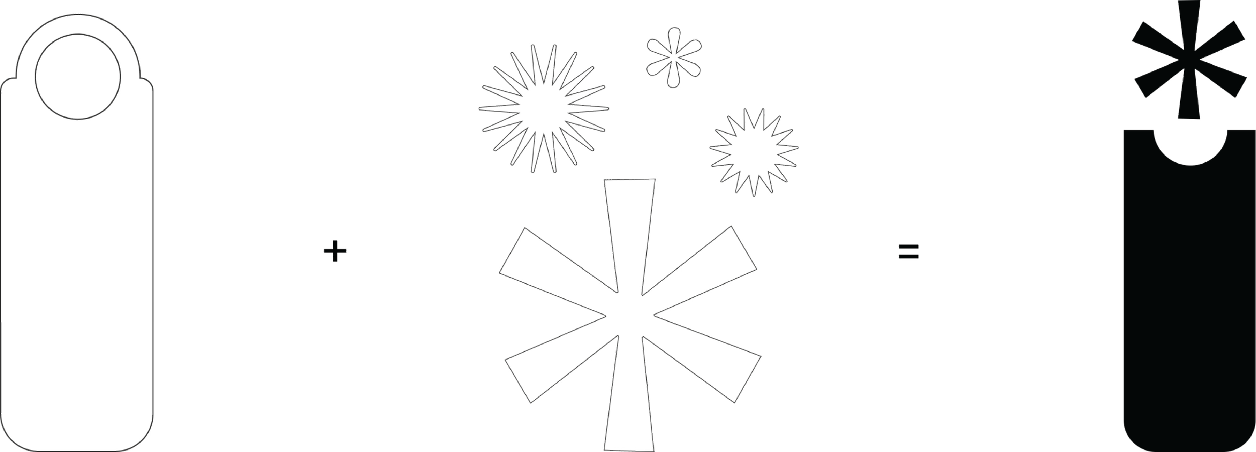 THE PROCESSThe process started with the physical shape of the device. From there, the challenge was translating sound into form — specifically, a loud, piercing, unavoidable sound. In visual language, rounded shapes read as soft and contained, while rays and pointed edges pierce and radiate. Shapes that expand outward from a center mimic the way sound actually travels. That logic led us directly to the asterisk: a mark that sits on the device silhouette and does exactly what the product does. It radiates. It demands attention. It is, visually, a shout.