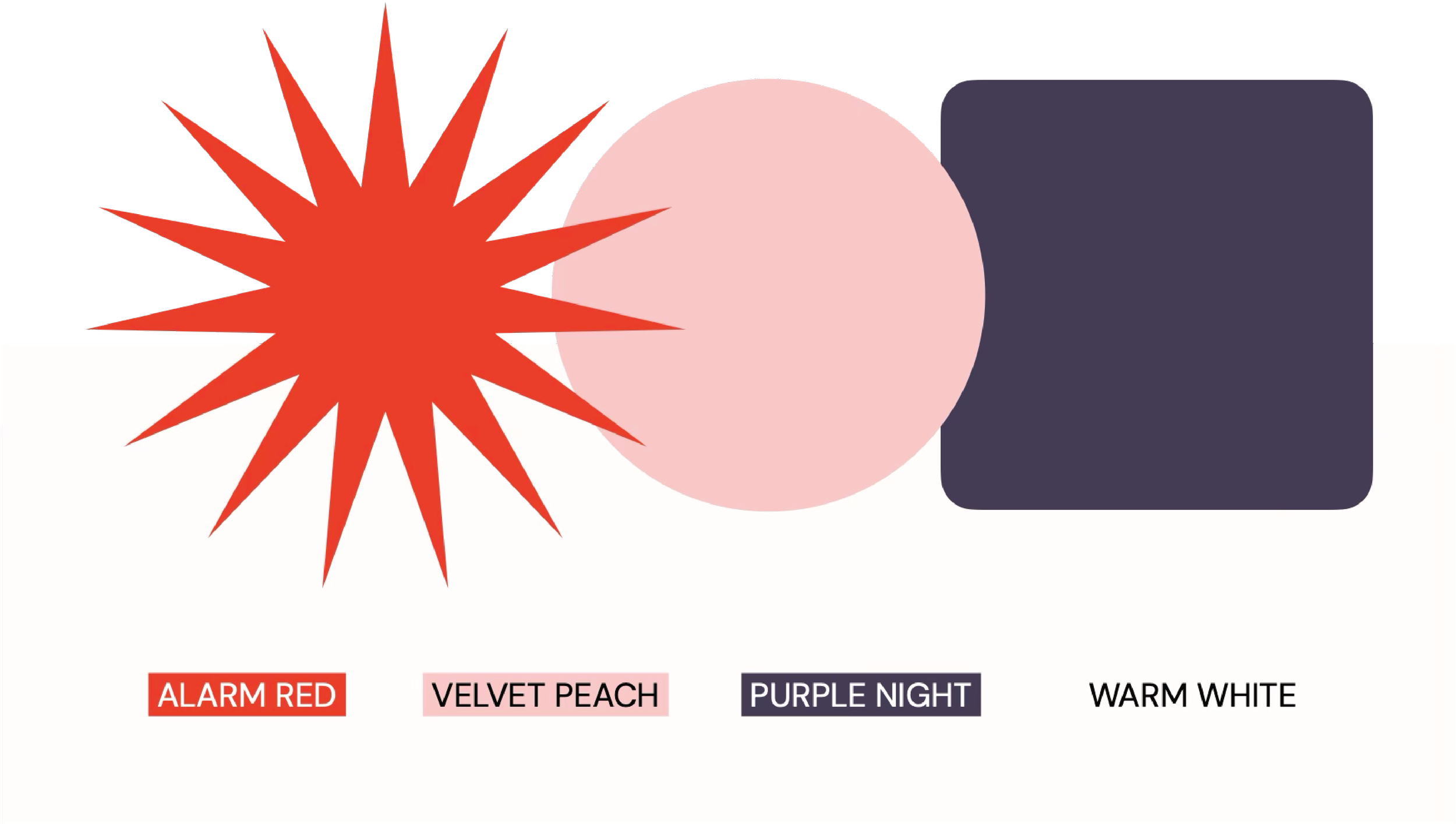 color paletteThe palette does the heaviest conceptual lifting. Alarm Red — vivid, urgent, impossible to ignore — anchors the identity and carries the brand's core tension between danger and confidence. Velvet Peach introduces warmth and approachability without tipping into fragility, and Purple Night adds sophistication and grounding, preventing the system from reading as purely reactive. Together the three colors occupy a space that neither fear-driven nor overly feminine brands typically reach: bold, warm, and credible all at once.